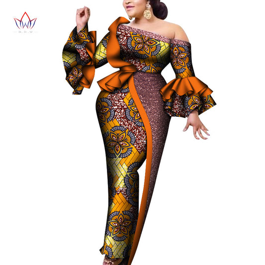 Plus Size Cerecloth Dress Off-shoulder