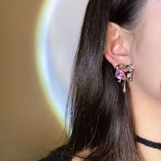 Pink Crystal Zircon Heart Earrings