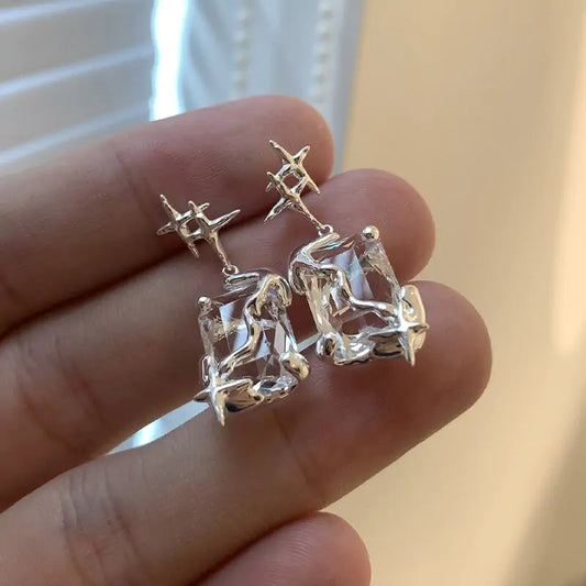 Irregular Silver Color Square Earrings