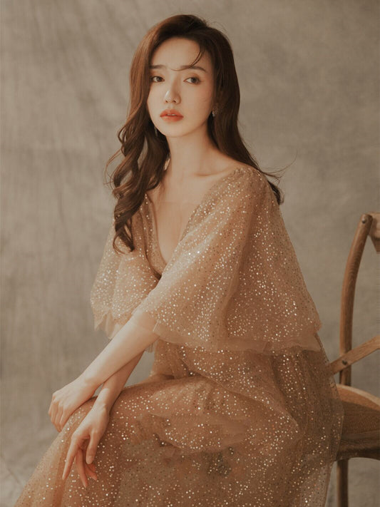 Three-Quarter Sleeves Pleated Mid-Length Dress
